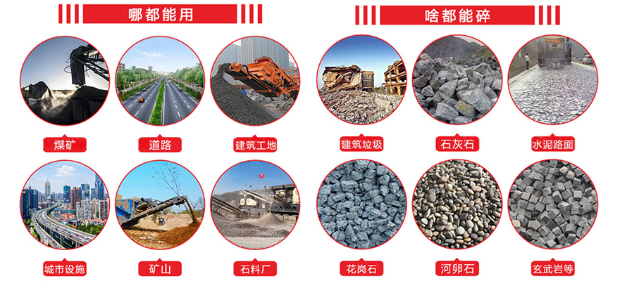 適用物料:河卵石、花崗巖、玄武巖、鐵礦石、石灰石、石英石、煤矸石、建筑垃圾等
